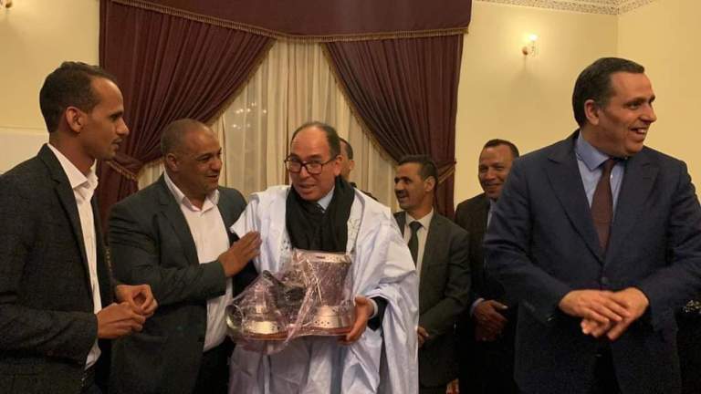 وفي سياق متصل، قدّم الصناع التقليديون هدية تذكارية مرفوقة باللباس التقليدي الصحراوي لمدير وكالة الجنوب، جبران الركلاوي، عرفانا بجهوده ومساعيه الحثيثة في سبيل ترقية الأوضاع السوسيو إقتصادية بالمنطقة وعمله الدؤوب من أجل التنزيل السليم للتوجهات الملكية القاضية بتنمية أقاليم جنوب المملكة.